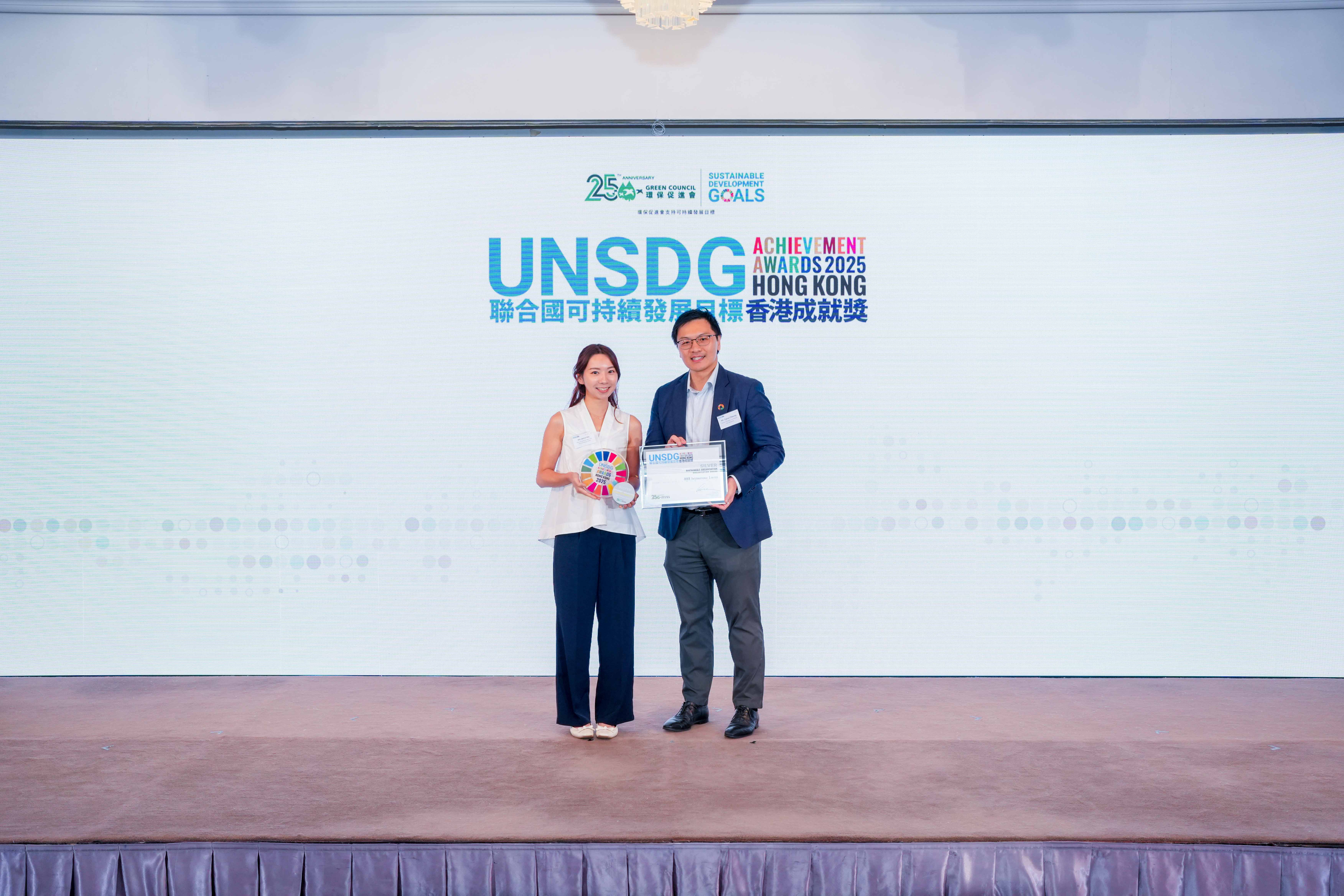 集團於環保促進會舉辦的「2025年度聯合國可持續發展目標香港成就獎」榮獲「銀獎」,充分肯定集團在實踐可持續發展的卓越表現。同時,集團執行董事顏文英女士獲頒「卓越SDGs領袖」殊榮,表彰她推進可持續發展目標(UNSDGs)的領導能力。